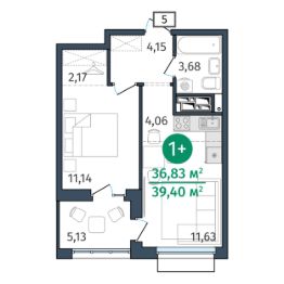 Общая площадь36,83 м²