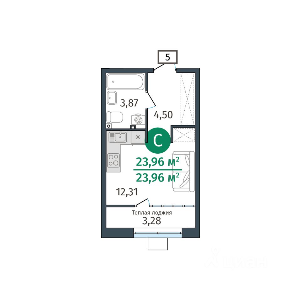 Общая площадь23,96 м²