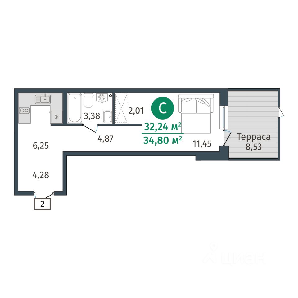 Общая площадь32,24 м²