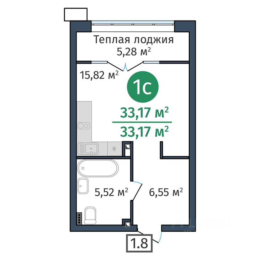 Общая площадь33,17 м²