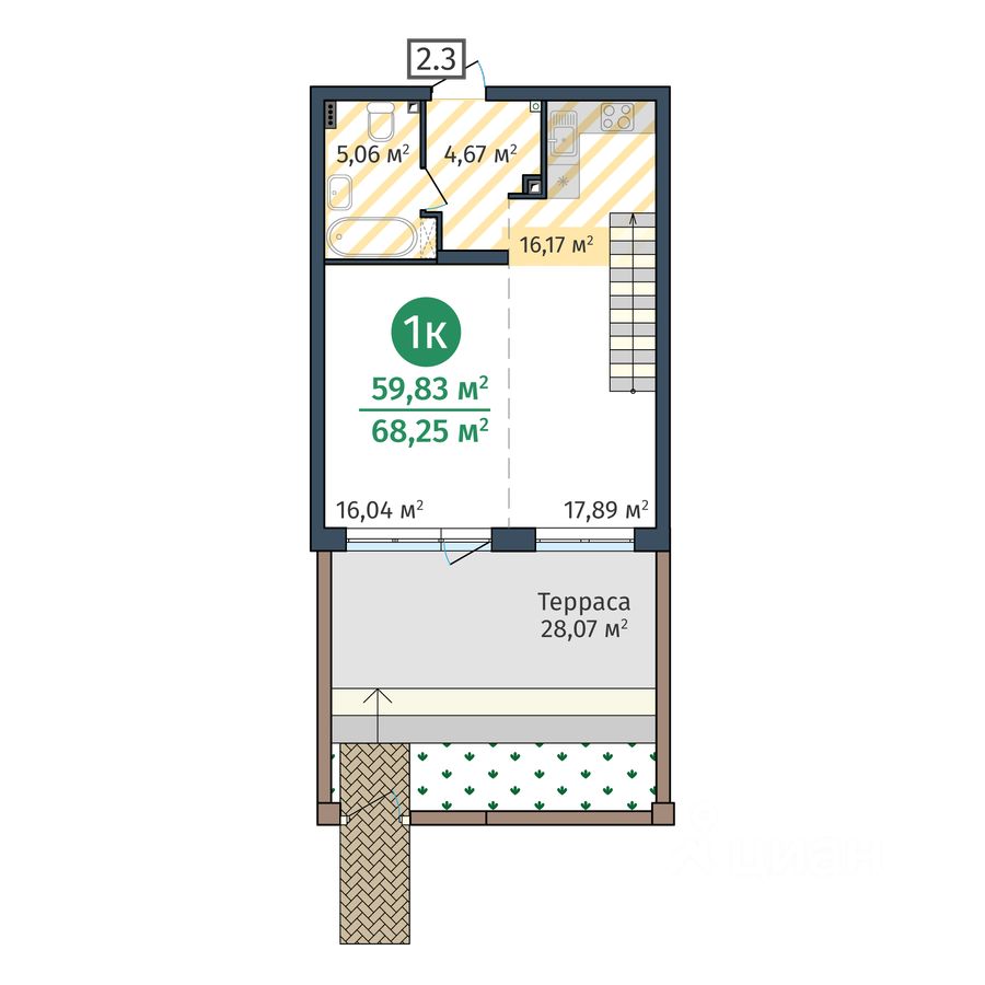 Продается 1-комн. квартира, 59,83 м²