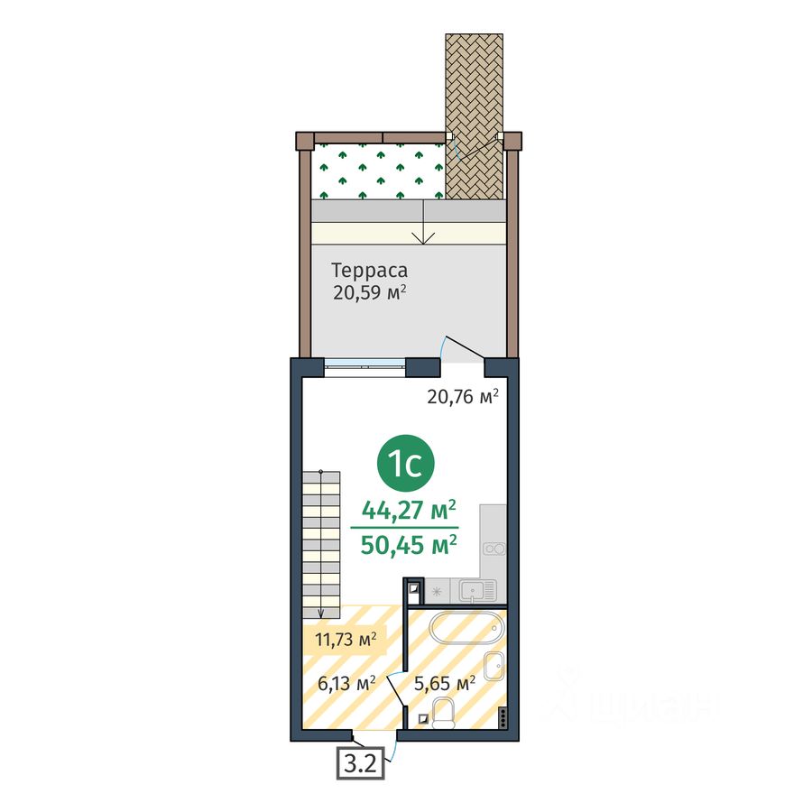Общая площадь44,27 м²