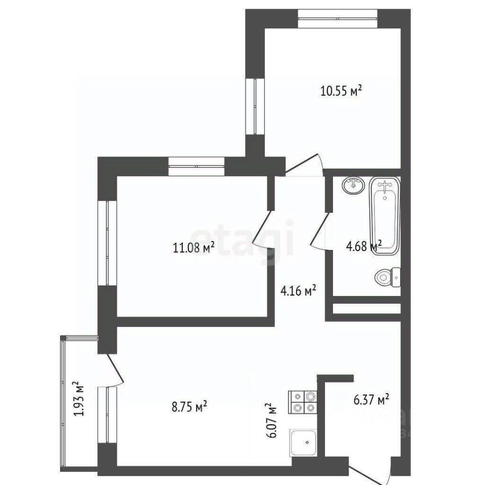 Планировка: просторная кухня-гостиная 15 м² с выходом на балкон, две изолированные комнаты с вместительными нишами для размещения гардероба, функциональная прихожая и совмещенный сан узел.