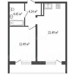 Самая функциональная планировка, кухня гостиная 21,94 кв.м, комната 12,49 кв.м, лоджия 6,31 кв.м, просторный санузел 4,45 кв.м. прихожая 4,24 кв.м. Высота потолка 2.7м.
