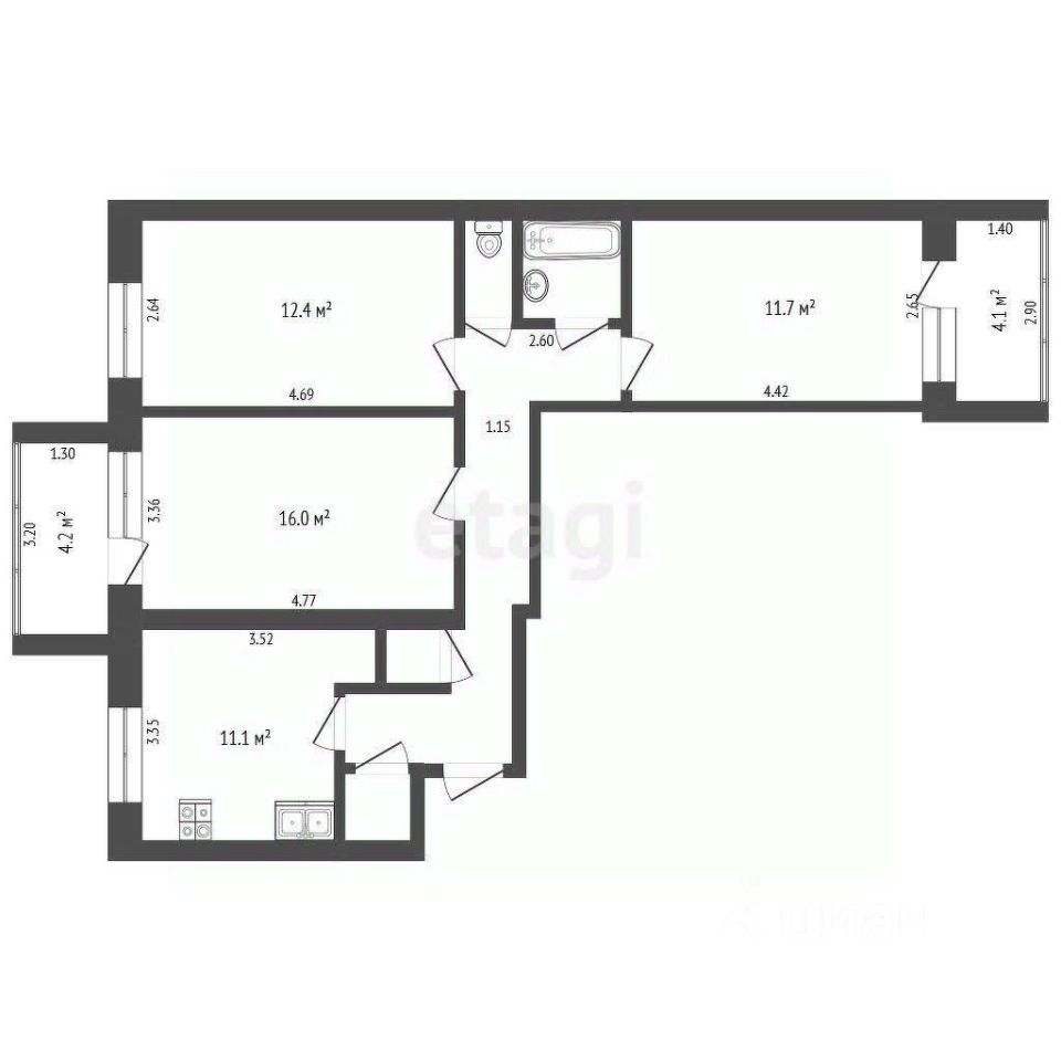 - Просторная и светлая планировка, уютная кухня-гостиная.