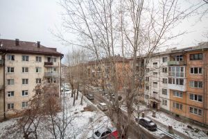 Однокомнатная угловая квартира площадью 31,7 кв.м на четвертом этаже пятиэтажного дома. Жилая площадь 19,2 кв.м. Кухня не большая, но вместительная 5,7 кв.м. Большая комната площадью 19,2 кв.м с двумя окнами и выходом на застекленный балкон. Высота потолков 2,65 м. Окна выходят во двор и на улицу.
