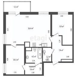 Эта просторная квартира общей площадью 63,9 кв.м. предлагает вам 2 уютные спальни, включая роскошную мастер-спальню с собственной гардеробной и удобным входом в санузел.