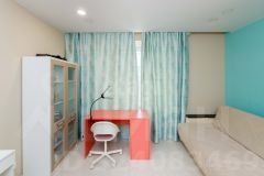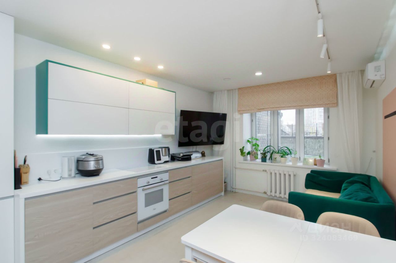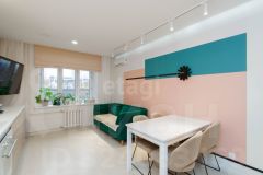 В квартире есть утеплённый балкон, натяжные потолки, ровные и покрашенные стены, напольное пробковое покрытие, а в санузле — тёплый пол и кафель.