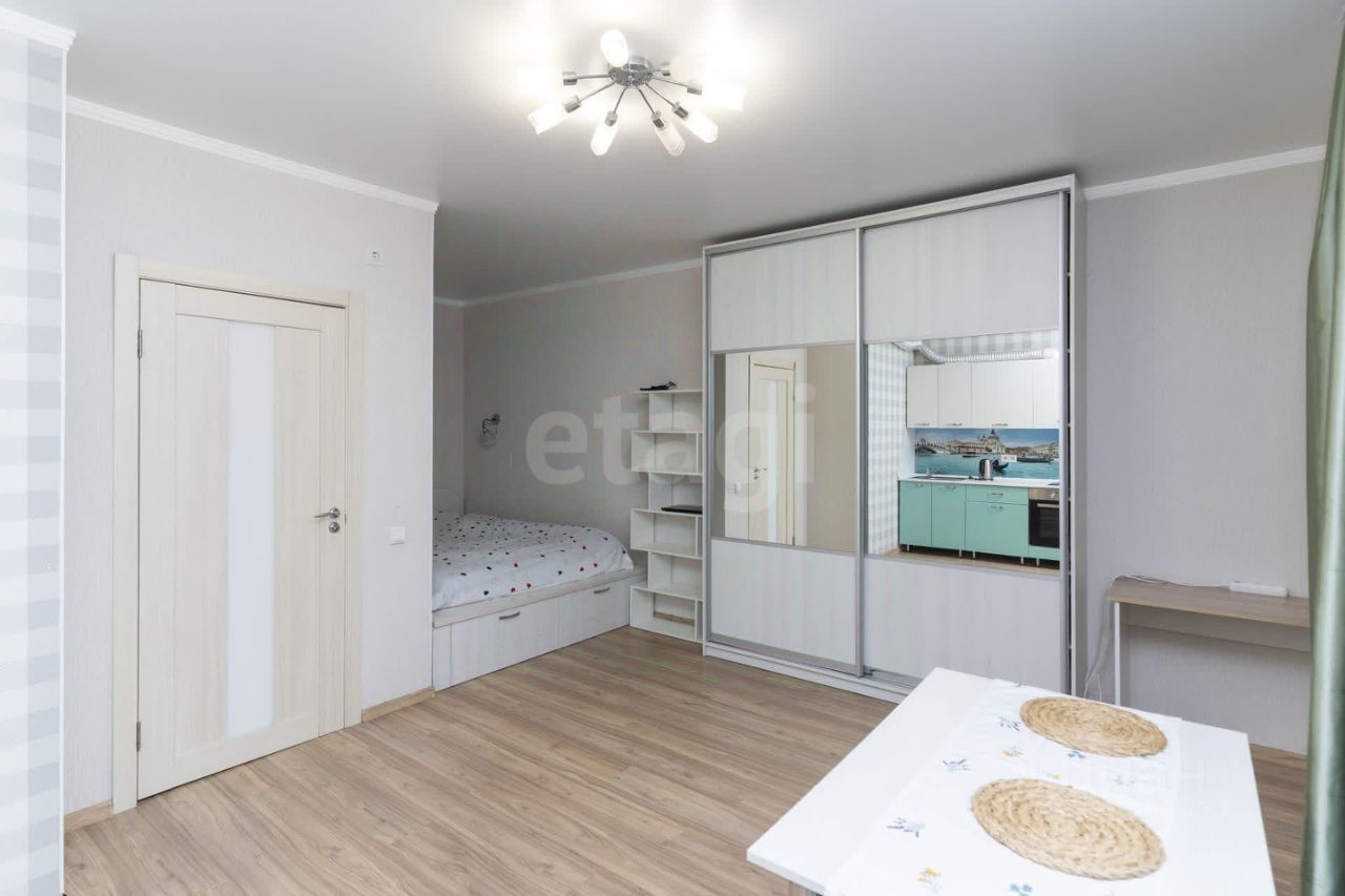 Продается уютная, светлая, ухоженная квартира-студия в ЖК Кристалл. Развитый и востребованный район Тюменский-3! Вариант ЗАЕЗЖАЙ И ЖИВИ! Подойдет как для собственного проживания так и для сдачи в аренду. Расположена на 14 этаже с красивым видом (окна во двор). Выполнен качественный современный pемонт в свeтлых тoнах. На полу ламинат, на стенах обои, натяжной потолок с точечными светильниками, в с/у кафель. Лоджия застеклена. При продаже все полностью остается кухонный гарнитур, холодильник, встроенная мебель и техника.