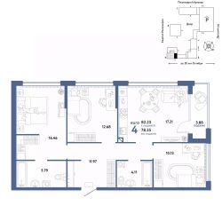Продается 4комнатная квартира на 25 этаже от застройщика Страна Девелопмент. Площадь квартиры 80,71 кв. м. Стоимость указана без учета акций.
