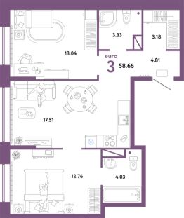 Продаётся 3-комнатная квартира в строящемся доме (ГП-2 (Дом Форум)), срок сдачи: IV-кв. 2025, общей площадью 58.66 кв.м., на 13 этаже. Жилой комплекс "Юнион" - многоэтажные жилые дома с объектами инфраструктуры в границах улиц Интернациональная, Объездная дорога г. Тюмень от застройщика ГК Страна Девелопмент.