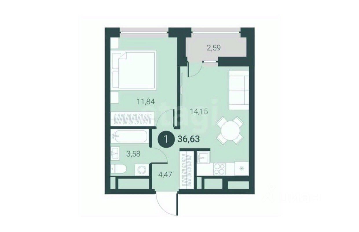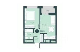 Однокомнатная квартира, общей площадью 36.63 квадратных метров. Расположена на 2 этаже современного жилого комплекса Мотивы.