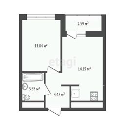 Находится на стадии строительства, сдаётся в улучшенной черновой отделке. Стены выровнены и оштукатурены, установлены розетки и выключатели. На полу цементно-песочная стяжка. Проведена горизонтальная разводка отопления, установлены радиаторы. В окнах пластиковые двухкамерные стеклопакеты, подоконники и откосы из ПВХ. Высота потолков составляет 2,7 метра. Срок сдачи - 2 квартал 2026