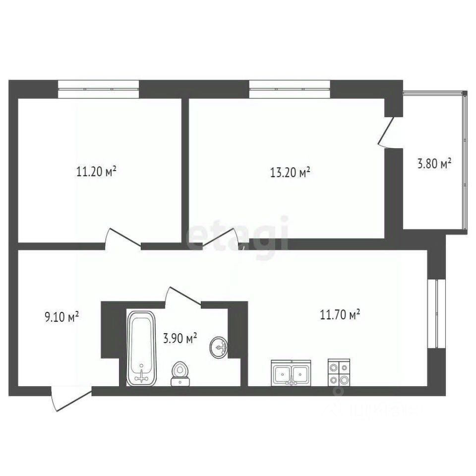 2-комнатная квартира с совмещенным санузлом. Пластиковые окна, балкон, железная дверь, счетчики воды.