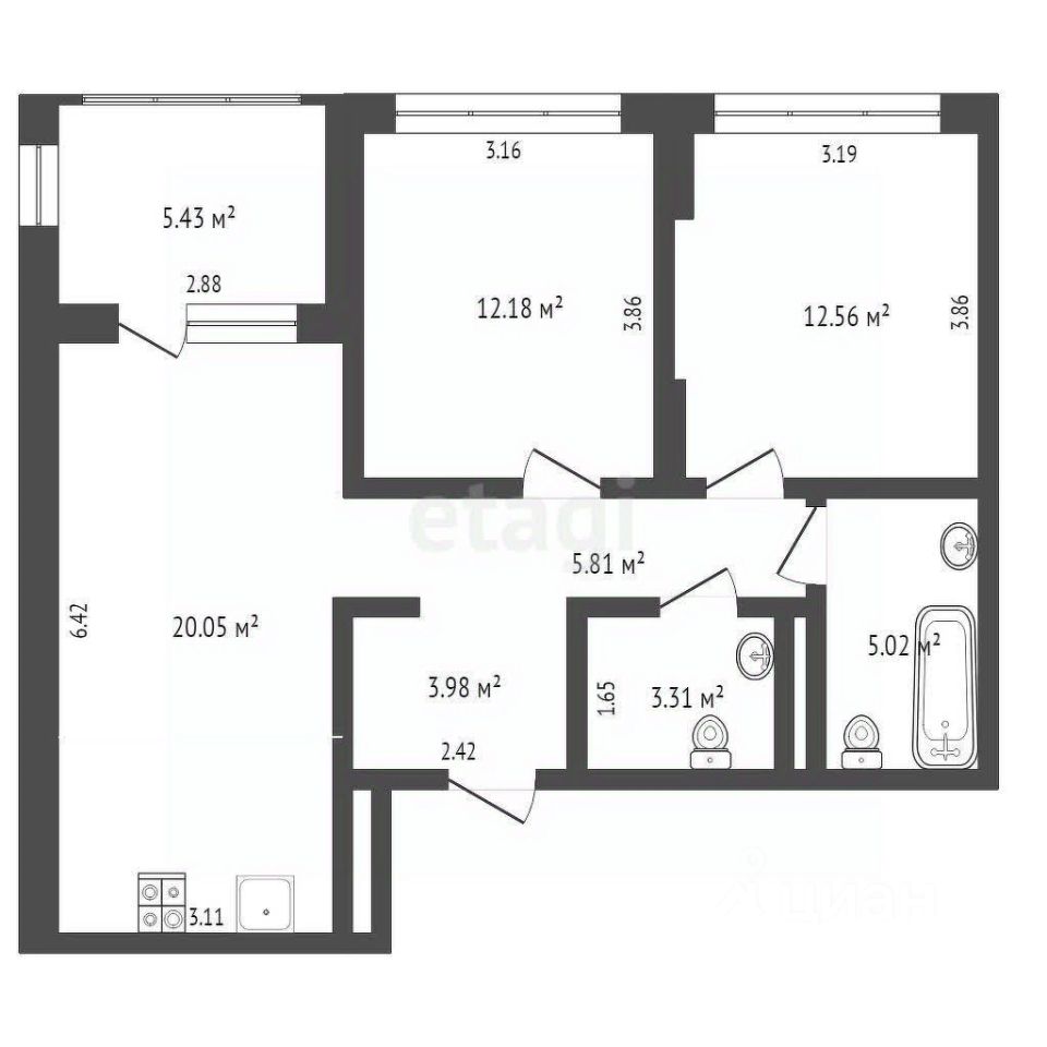 Планировка квартиры продумана до мелочей: просторная прихожая встречает вас с теплом и уютом, а огромная кухня-гостиная площадью 20 кв.м станет центром семейных встреч и дружеских посиделок. Две комнаты правильной формы обеспечат вам максимальное удобство и возможность для реализации любых дизайнерских идей. Два санузла позволят избежать утренних очередей, а лоджия площадью более 5 кв.м станет прекрасным местом для отдыха и наслаждения свежим воздухом. Высокие потолки добавляют пространству лёгкости и воздушности.