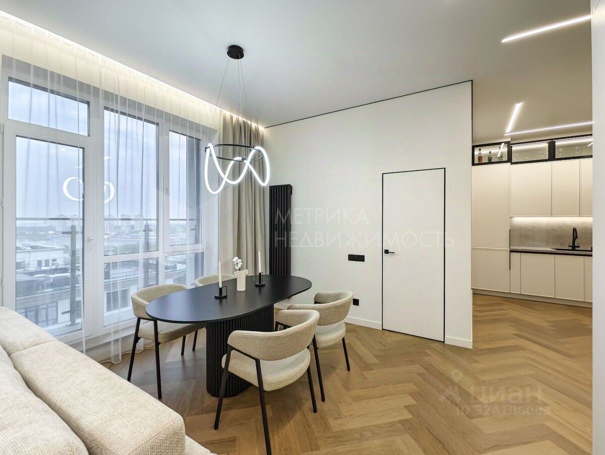 Кухня: большой обеденный стол, керамогранитный фартук и вся встроенная техника остаются с квартирой — кухня-мечта!