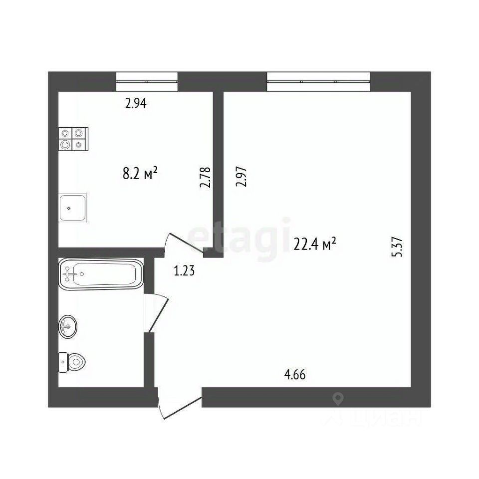 Санузел совмещен и полностью отделан кафелем, здесь установлена ванна, что позволит вам наслаждаться комфортом и расслаблением после долгого дня. Обратите внимание, что в квартире нет балкона.