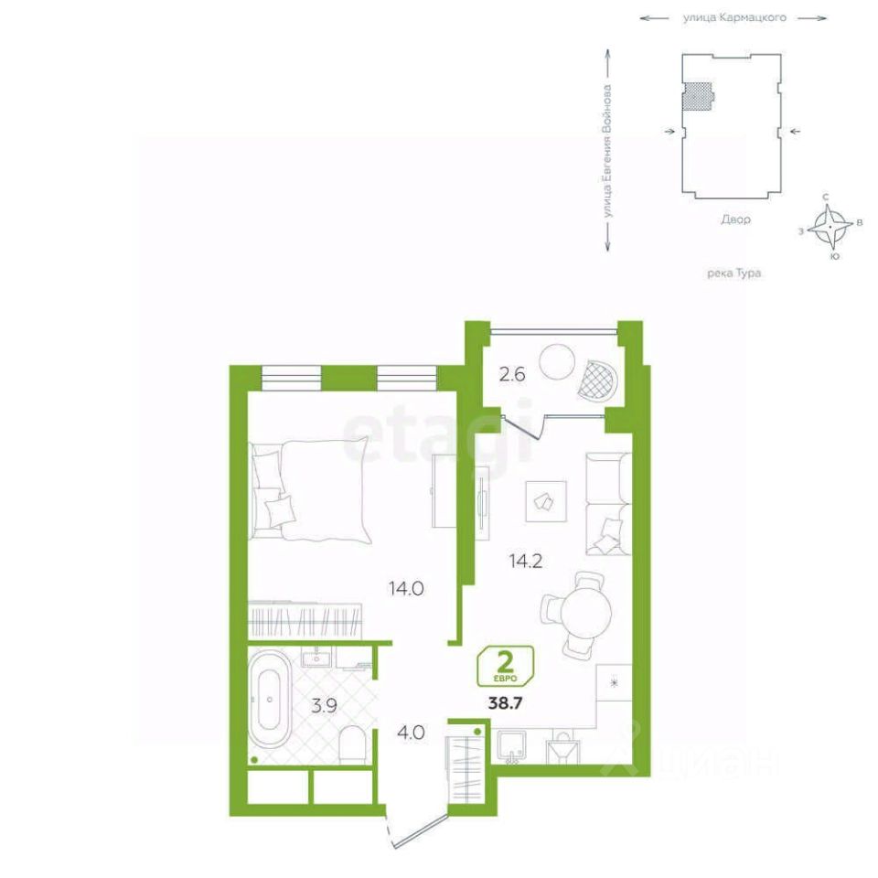 Продается великолепная однокомнатная квартира площадью 38.7 м² в современном жилом комплексе "КОСМО"! Этот уникальный объект расположен в 5-м Заречном микрорайоне, который считается одним из самых привлекательных и развивающихся районов Тюмени.Расположение квартиры и окон выходит часть на о. Алебашево и часть на р.Тура. Здесь вы сможете наслаждаться потрясающими видами на реку и живописные пейзажи, создавая атмосферу уюта и спокойствия.