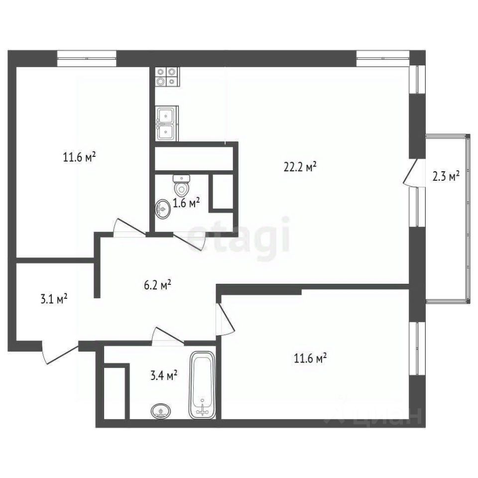 У квартиры удобная планировка: площадь 60 кв.м., две разделенные спальни, не имеющие смежных стен, что обеспечит приватность каждому члену семьи. В гостиной панорамные окна с отличными видами на реку и двор. Так же в гостиной уже заведена трасса под кондиционер. В квартире уже выполнен ремонт, что позволит сэкономить вам много средств и времени.