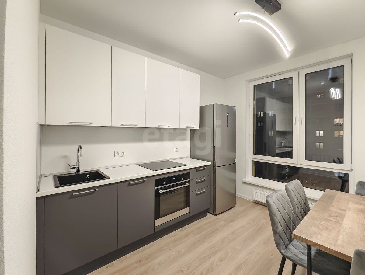 -Мебель. Кухня оборудована шикарным кухонным гарнитуром в стиле лофт с встроенной техникой, включая варочную панель, духовой шкаф, посудомоечную машину и вытяжку. Гостиная оформлена в скандинавском стиле: здесь вас ждут уютный диван, кресло, торшер и набор кофейных столиков. Прихожая также не оставит вас равнодушными: обувница, пуф и вешалка создадут атмосферу современного уюта. В ванной комнате установлен зеркальный шкаф и тумба под раковину.