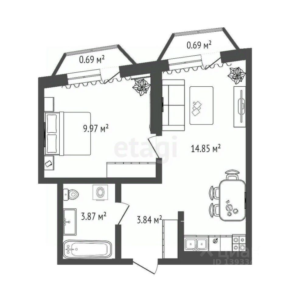Окна квартиры выходят во двор с видом на Таунхаусы.
