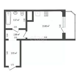 Квартира расположена на 15 этаже, что обеспечивает прекрасный вид из окон. Внутри квартиры продумана каждая деталь: просторная прихожая , уютная ванная комната, жилая комната, которую можно легко зонировать, застекленный балкон, который можно использовать по своему усмотрению.