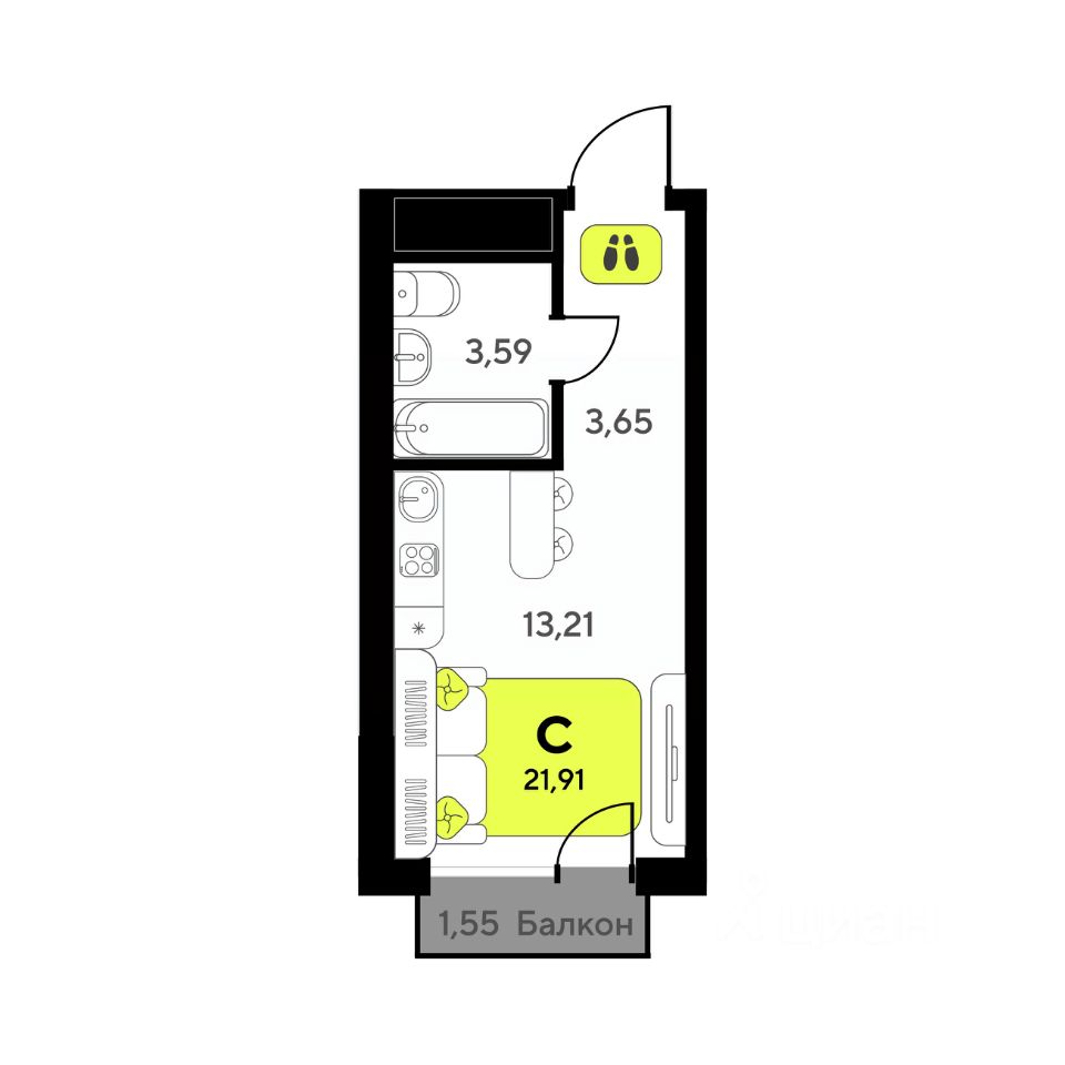 Общая площадь21,91 м²