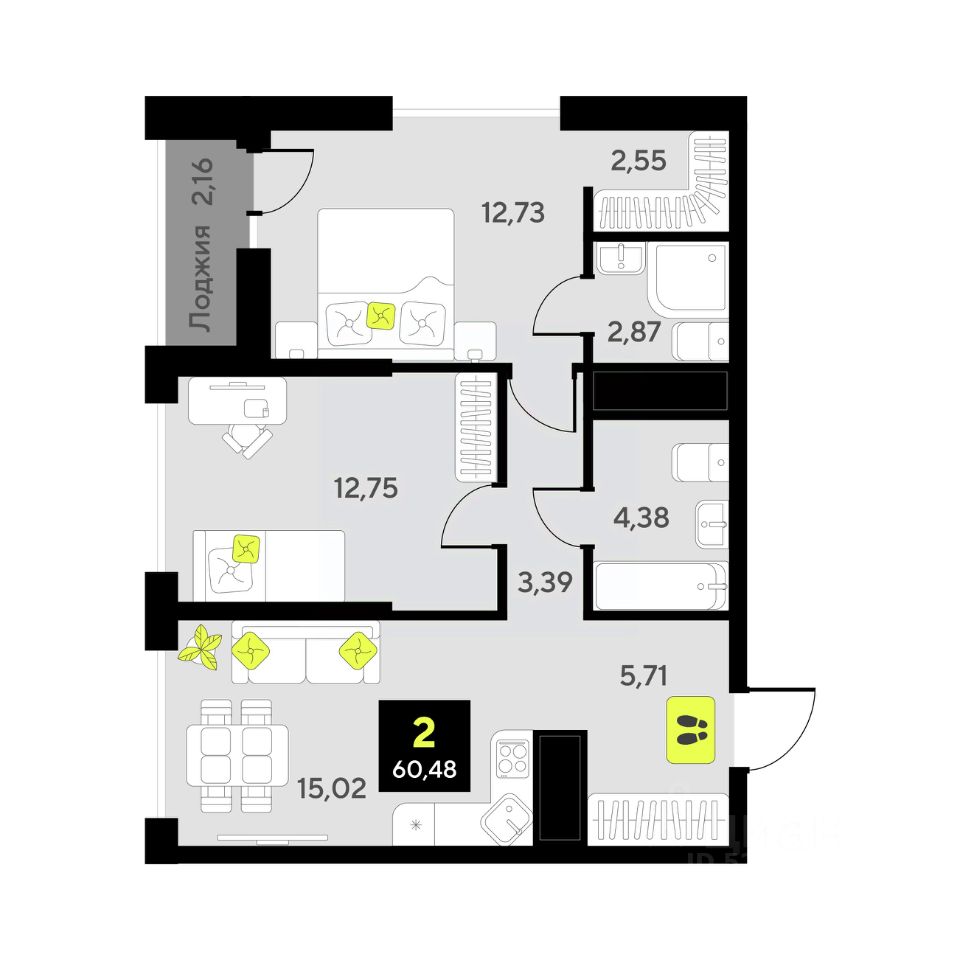 Продаётся 2-комнатная квартира в сданном доме (Андрея Приказнова, 1 (ГП-4)), срок сдачи: IV-кв. 2024, общей площадью 60.48 кв.м., на 14 этаже. Новый жилой комплекс "Мотивы" от компании "ISB Development" расположен в Калининском округе Тюмени на ул. Первооткрывателей.