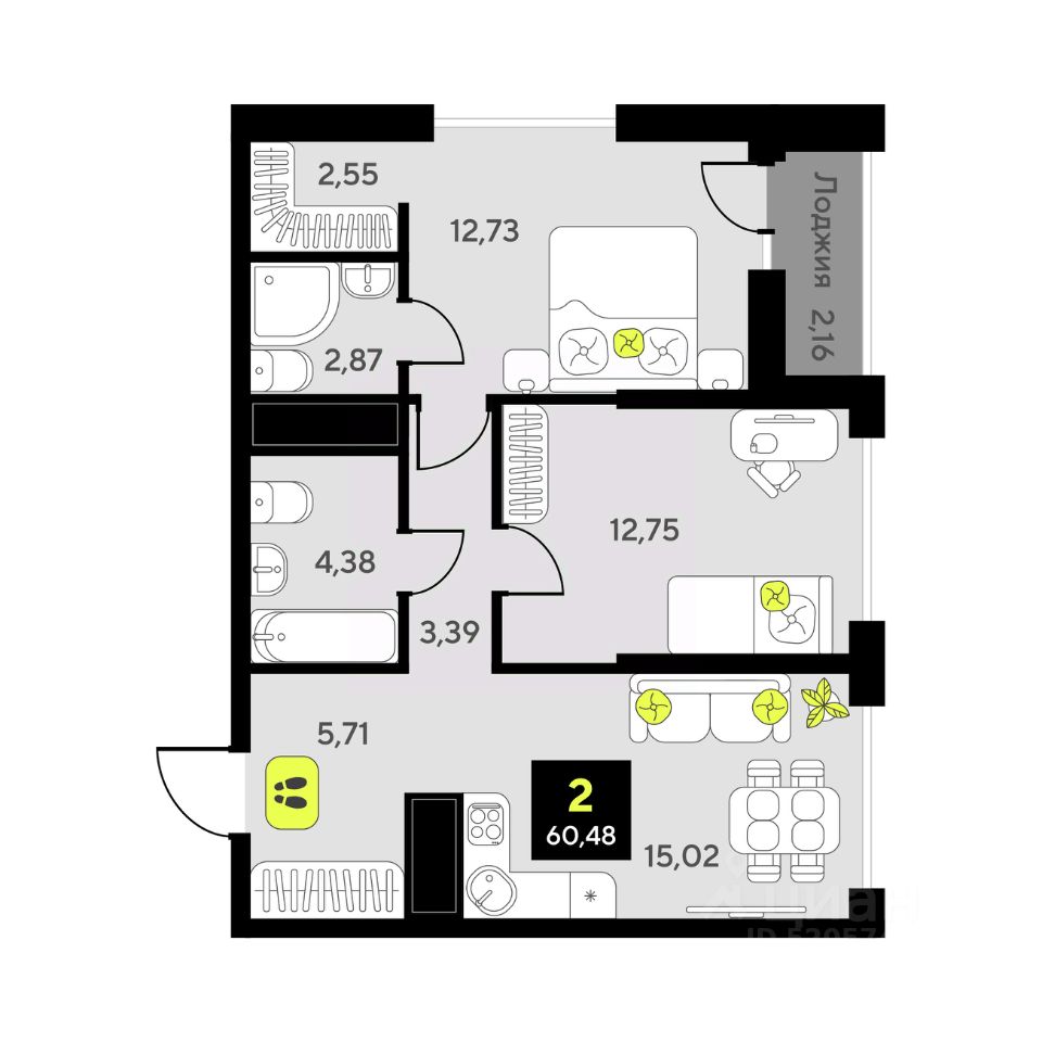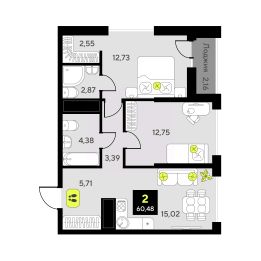 Продаётся 2-комнатная квартира в сданном доме (Андрея Приказнова, 1 (ГП-4)), срок сдачи: IV-кв. 2024, общей площадью 60.48 кв.м., на 5 этаже. Новый жилой комплекс "Мотивы" от компании "ISB Development" расположен в Калининском округе Тюмени на ул. Первооткрывателей.