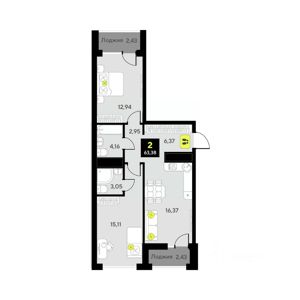 Продаётся 2-комнатная квартира в сданном доме (Андрея Приказнова, 1 (ГП-4)), срок сдачи: IV-кв. 2024, общей площадью 63.38 кв.м., на 11 этаже. Новый жилой комплекс "Мотивы" от компании "ISB Development" расположен в Калининском округе Тюмени на ул. Первооткрывателей.