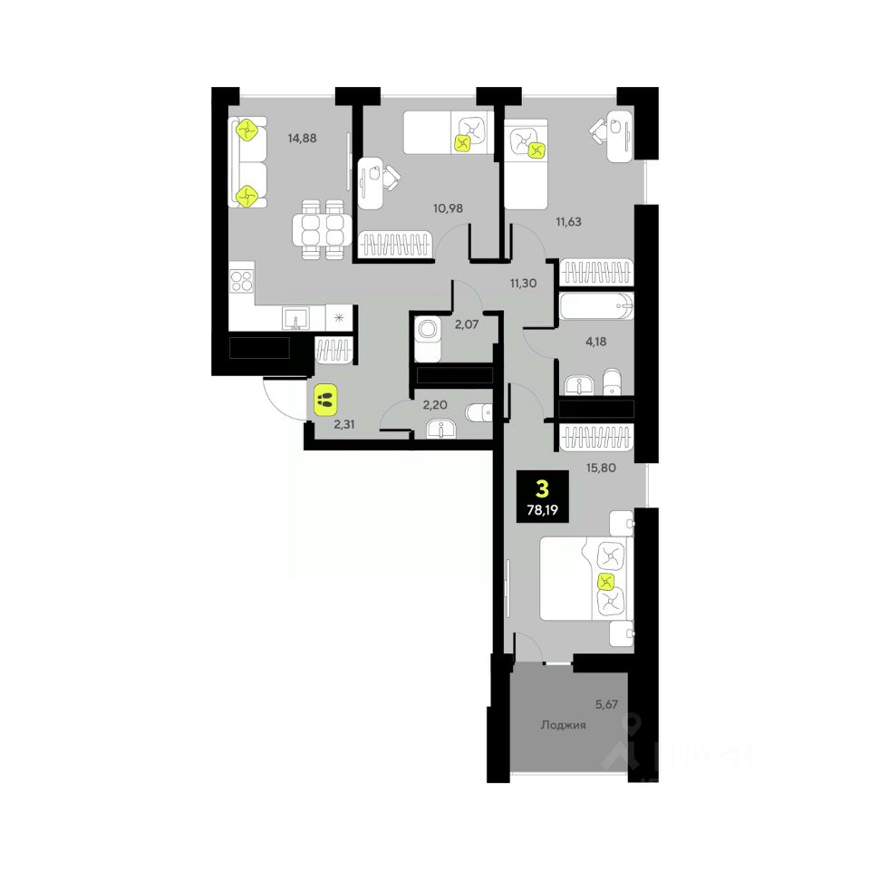 Продаётся 3-комнатная квартира в сданном доме (Андрея Приказнова, 1 (ГП-4)), срок сдачи: IV-кв. 2024, общей площадью 78.19 кв.м., на 9 этаже. Новый жилой комплекс "Мотивы" от компании "ISB Development" расположен в Калининском округе Тюмени на ул. Первооткрывателей.