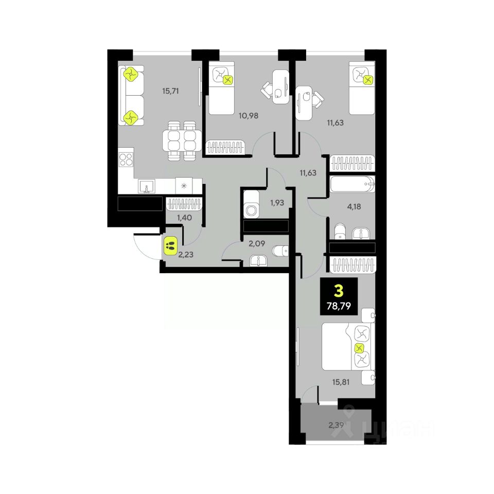 Продаётся 3-комнатная квартира в сданном доме (Андрея Приказнова, 1 (ГП-4)), срок сдачи: IV-кв. 2024, общей площадью 78.79 кв.м., на 4 этаже. Новый жилой комплекс "Мотивы" от компании "ISB Development" расположен в Калининском округе Тюмени на ул. Первооткрывателей.