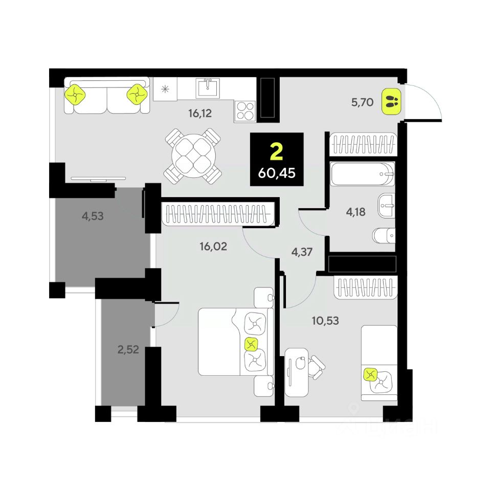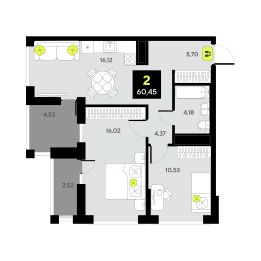 Продаётся 2-комнатная квартира в сданном доме (Андрея Приказнова, 1 (ГП-4)), срок сдачи: IV-кв. 2024, общей площадью 60.45 кв.м., на 5 этаже. Новый жилой комплекс "Мотивы" от компании "ISB Development" расположен в Калининском округе Тюмени на ул. Первооткрывателей.