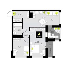 Продаётся 2-комнатная квартира в сданном доме (Первооткрывателей, 11 (ГП-2)), срок сдачи: IV-кв. 2023, общей площадью 60.45 кв.м., на 3 этаже. Новый жилой комплекс "Мотивы" от компании "ISB Development" расположен в Калининском округе Тюмени на ул. Первооткрывателей.