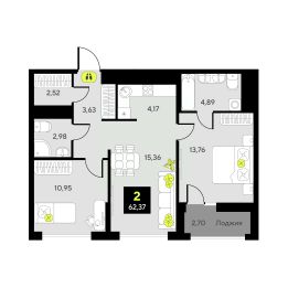 Продаётся 2-комнатная квартира в сданном доме (Первооткрывателей, 11 (ГП-2)), срок сдачи: IV-кв. 2023, общей площадью 62.37 кв.м., на 3 этаже. Новый жилой комплекс "Мотивы" от компании "ISB Development" расположен в Калининском округе Тюмени на ул. Первооткрывателей.