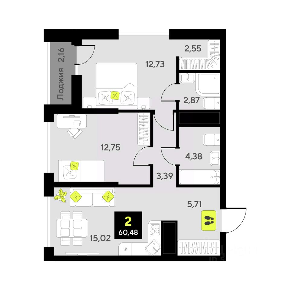 Продаётся 2-комнатная квартира в сданном доме (Первооткрывателей, 9 (ГП-1)), срок сдачи: IV-кв. 2024, общей площадью 60.48 кв.м., на 10 этаже. Новый жилой комплекс "Мотивы" от компании "ISB Development" расположен в Калининском округе Тюмени на ул. Первооткрывателей.