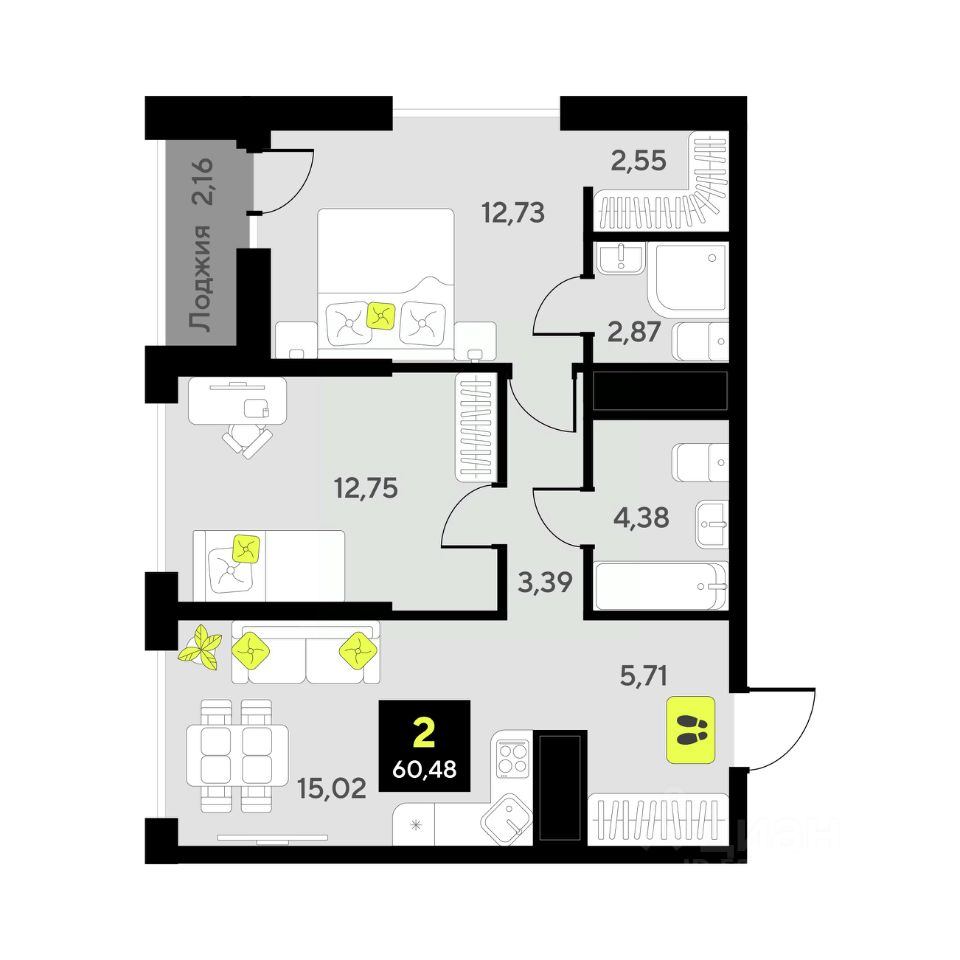 Продаётся 2-комнатная квартира в сданном доме (Первооткрывателей, 9 (ГП-1)), срок сдачи: IV-кв. 2024, общей площадью 60.48 кв.м., на 14 этаже. Новый жилой комплекс "Мотивы" от компании "ISB Development" расположен в Калининском округе Тюмени на ул. Первооткрывателей.