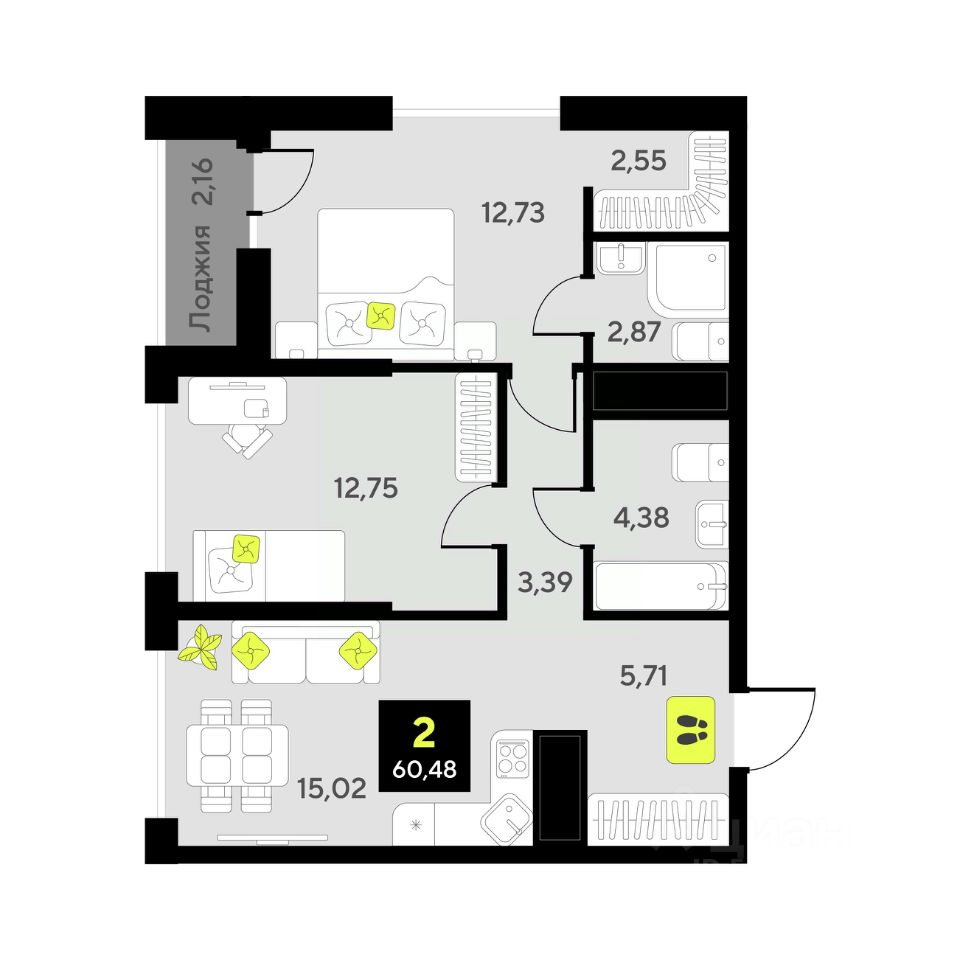 Продаётся 2-комнатная квартира в сданном доме (Первооткрывателей, 9 (ГП-1)), срок сдачи: IV-кв. 2024, общей площадью 60.48 кв.м., на 5 этаже. Новый жилой комплекс "Мотивы" от компании "ISB Development" расположен в Калининском округе Тюмени на ул. Первооткрывателей.