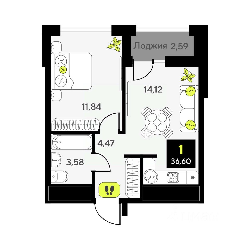 36,6 м²