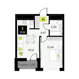 Продаётся 1-комнатная квартира в строящемся доме (ГП-6), срок сдачи: II-кв. 2026, общей площадью 37.22 кв.м., на 14 этаже. Новый жилой комплекс "Мотивы" от компании "ISB Development" расположен в Калининском округе Тюмени на ул. Первооткрывателей.