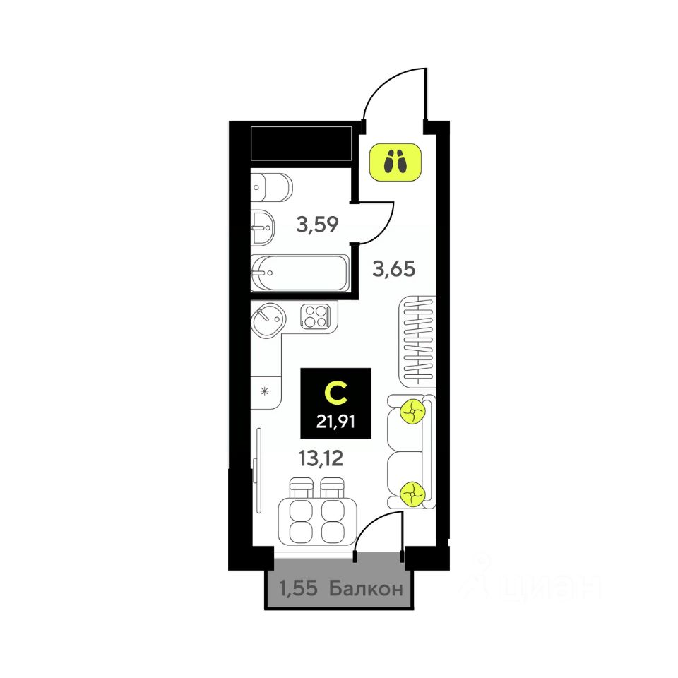 Продаётся студия в строящемся доме (ГП-6), срок сдачи: II-кв. 2026, общей площадью 21.91 кв.м., на 11 этаже. Новый жилой комплекс "Мотивы" от компании "ISB Development" расположен в Калининском округе Тюмени на ул. Первооткрывателей.