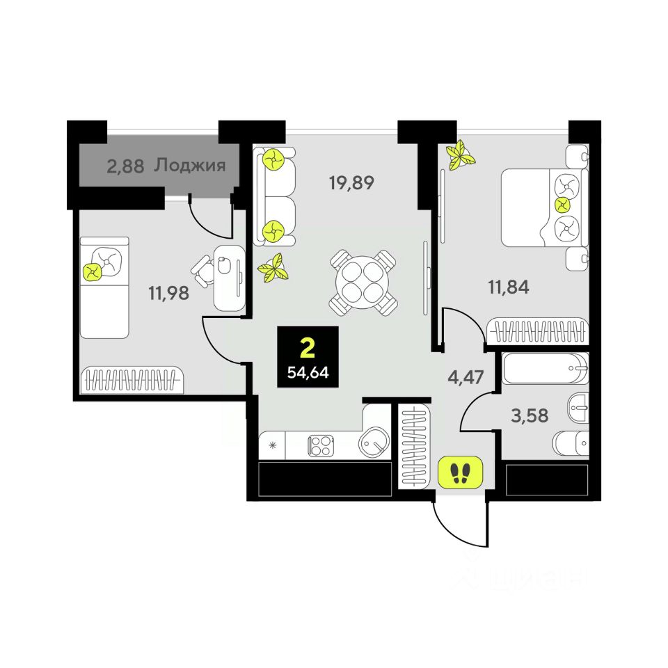 54,64 м²