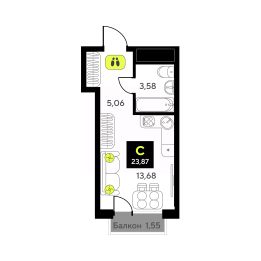 Продаётся студия в строящемся доме (ГП-6), срок сдачи: II-кв. 2026, общей площадью 23.87 кв.м., на 6 этаже. Новый жилой комплекс "Мотивы" от компании "ISB Development" расположен в Калининском округе Тюмени на ул. Первооткрывателей.