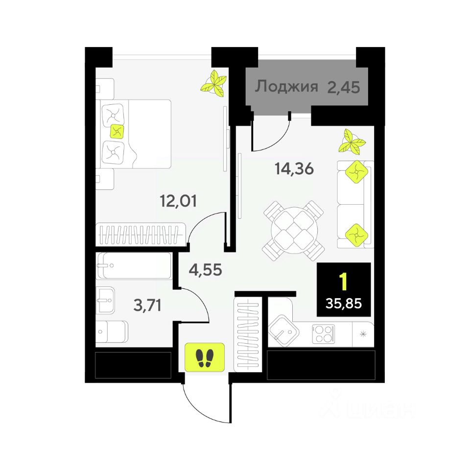 Продаётся 1-комнатная квартира в сданном доме (Приказнова, 7 (ГП-3)), срок сдачи: IV-кв. 2024, общей площадью 35.85 кв.м., на 14 этаже. Новый жилой комплекс "Мотивы" от компании "ISB Development" расположен в Калининском округе Тюмени на ул. Первооткрывателей.