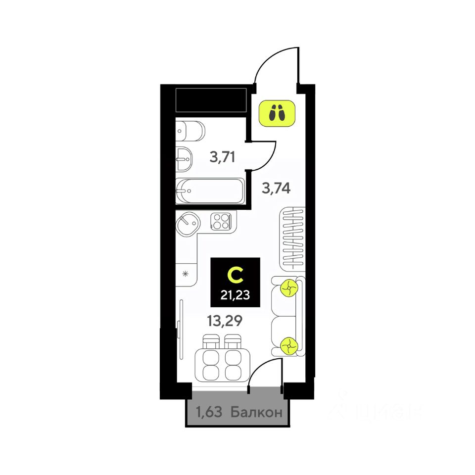 21,23 м²
