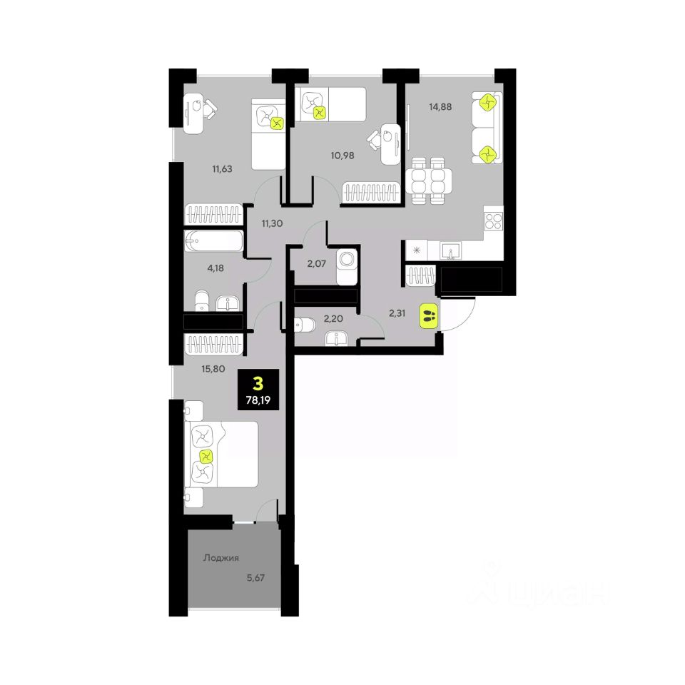 Продаётся 3-комнатная квартира в сданном доме (Приказнова, 7 (ГП-3)), срок сдачи: IV-кв. 2024, общей площадью 78.19 кв.м., на 7 этаже. Новый жилой комплекс "Мотивы" от компании "ISB Development" расположен в Калининском округе Тюмени на ул. Первооткрывателей.