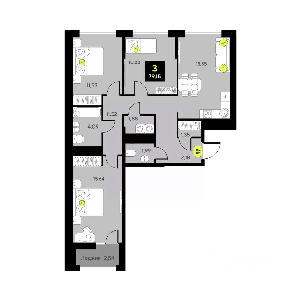 Продаётся 3-комнатная квартира в строящемся доме (ГП-7), срок сдачи: II-кв. 2026, общей площадью 79.15 кв.м., на 7 этаже. Новый жилой комплекс "Мотивы" от компании "ISB Development" расположен в Калининском округе Тюмени на ул. Первооткрывателей.