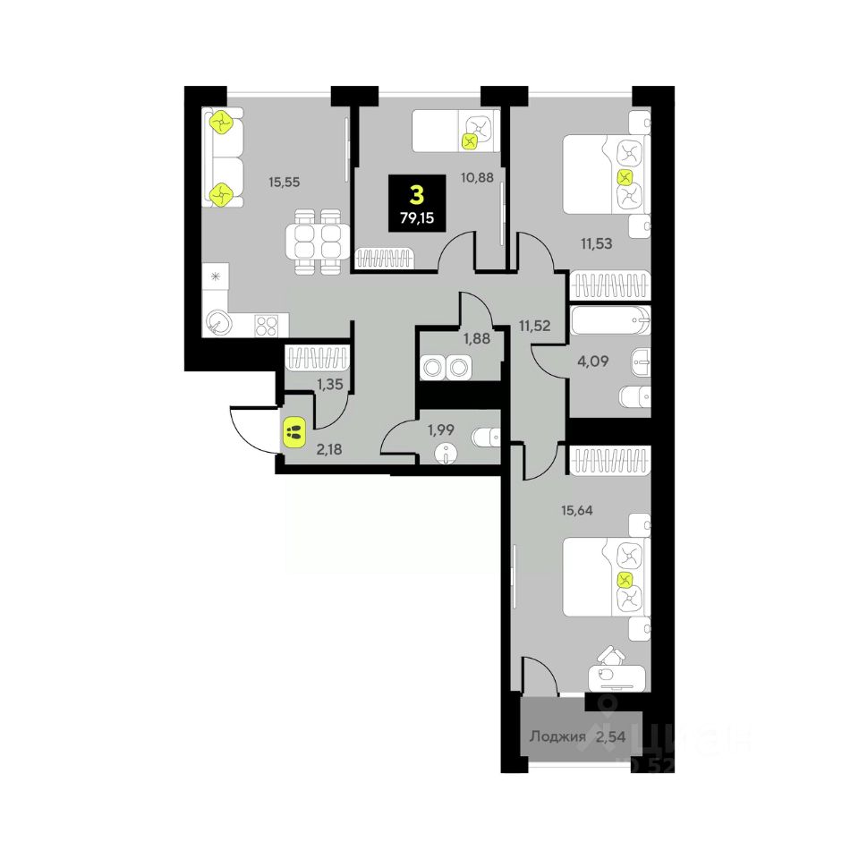 Продаётся 3-комнатная квартира в строящемся доме (ГП-7), срок сдачи: II-кв. 2026, общей площадью 79.15 кв.м., на 5 этаже. Новый жилой комплекс "Мотивы" от компании "ISB Development" расположен в Калининском округе Тюмени на ул. Первооткрывателей.