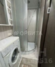Душевая кабина, стиральная машинка и шкаф-пенал для хранения