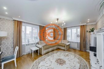 Три отдельные комнаты, одна из которых просторная гостиная 25 м2 с электрокамином. Кухня с видом на восход, обустроена продуманным кухонным гарнитуром, фартук выложен итальянской плиткой. Потолок обрамлен широкими карнизами, что придает квартире классический вид. Санузел раздельный, ванная 6 м2, в туалете сделан шкаф купе для хранения бытовых принадлежностей, сантехника Grohe. Два раздельных балкона, остеклены. Окна выходят на две стороны, во двор и на улицу Пермякова, за счет этого в квартире летом всегда свежо.